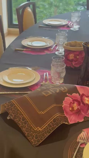 Bring the beauty of nature to your Shabbat table with our Flora and Fauna challah cover. Thoughtfully designed, this piece blends elegance and whimsy, creating a serene and joyful atmosphere for your Shabbat meals.